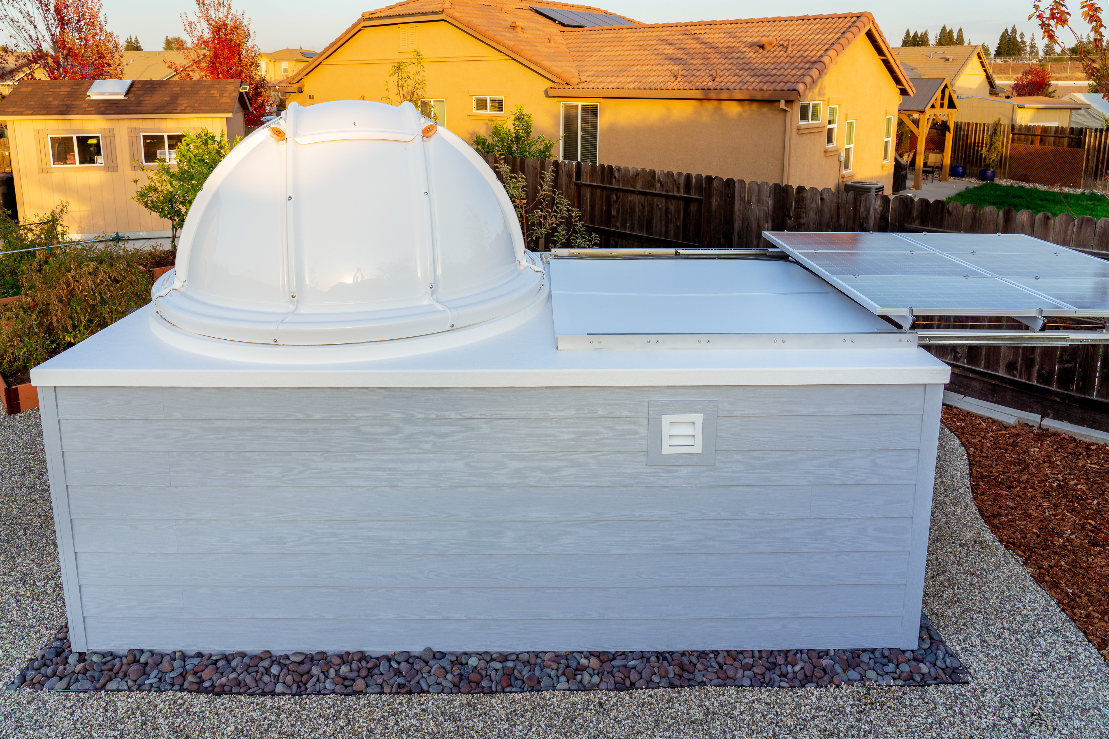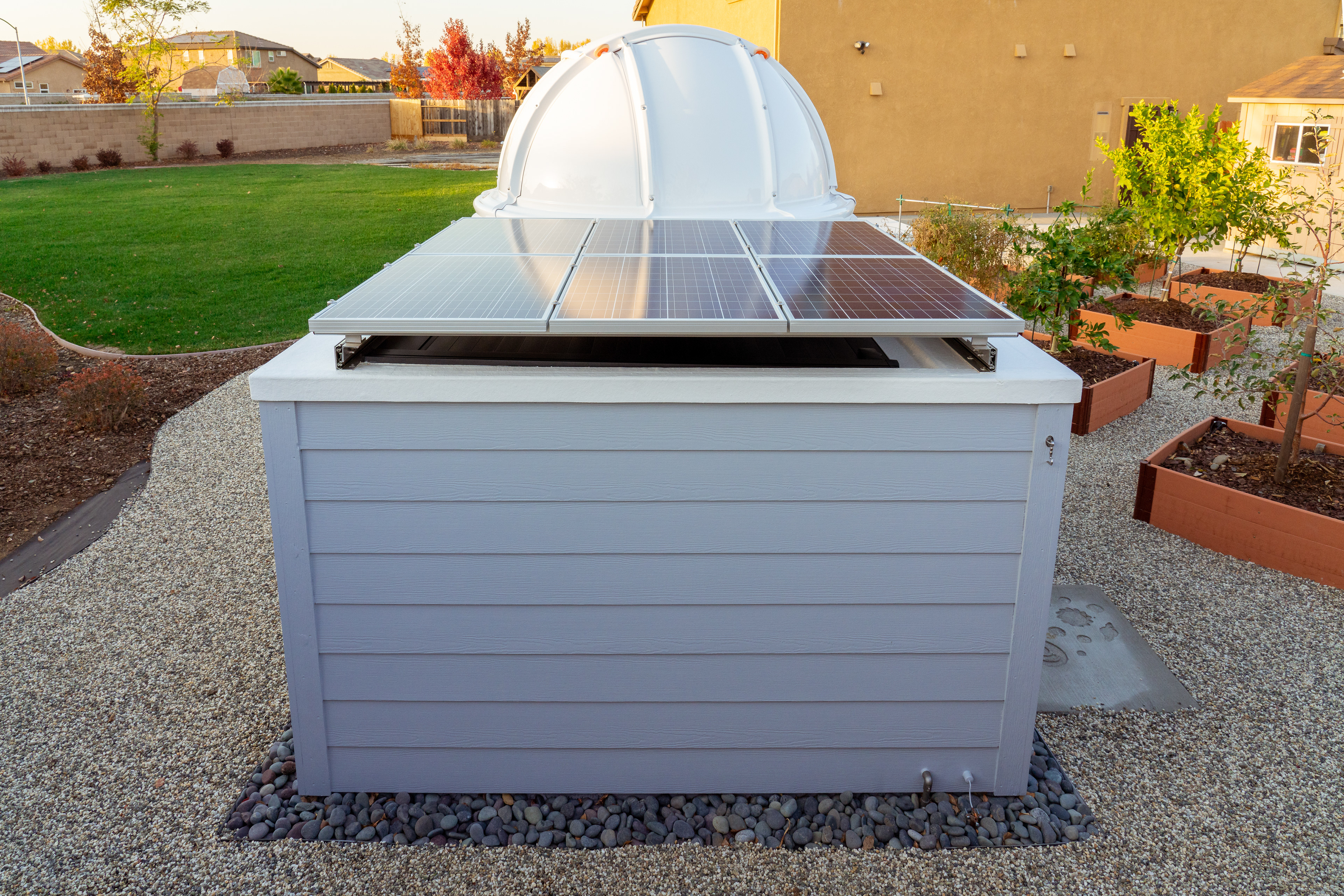 When we bought our house, one of the "custom" additions requested from the builder was to run power under the concrete walkway that surrounds the house. They screwed up and long story short there was no external power under the walkway. So, the only way to run the power 50' away from the house was to cut through existing walkway, sprinkler and drainage systems, etc. I compared the cost between that job and installing a 400W solar power off-the-grid kit and decided to give solar a try. Sometime during early stages of building the observatory I picked up another solar power kit, this time for the garden shed, but then finally came to terms with the fact that I really have no need for power in that shed... So, now I had two solar power kits, 600w of solar power - it was time to figure out a way to mount 6 panels get the rest of the kit components installed.